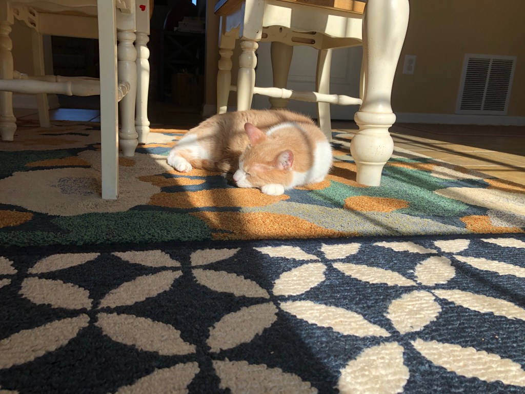 February 17, 2020September 21, 2020 aguyfromindiana Oh to be a cat Oh to be our one remaining cat, to be able to find the sun just like that. To be so warm and cozy, then dad starts to get nosey. Oh if I could just leave you alone, you could enjoy the sun as it shone. But I can’t. And that’s that. Moo moo Kitty kat Share this: Click to share on X (Opens in new window) X Click to share on Facebook (Opens in new window) Facebook Like Loading... Related